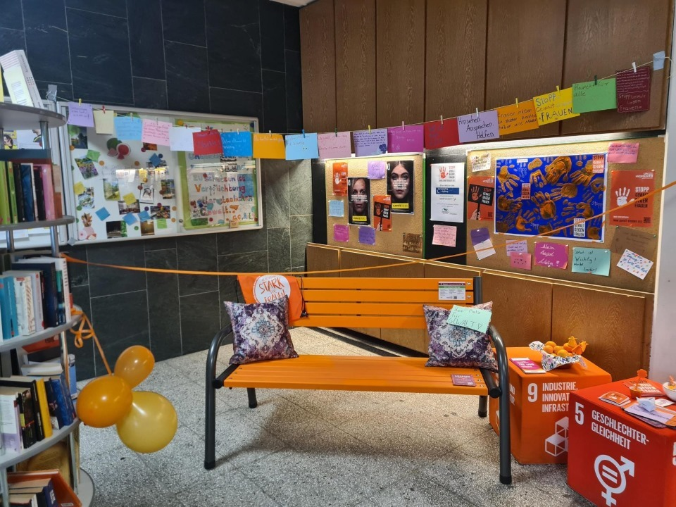 Die orange Bank an unserer Schule ist mehr als nur ein Kunstwerk oder eine Sitzgelegenheit für die Pause. Sie ist ein Symbol für das Engagement unserer Schulgemeinschaft, gegen Gewalt an Frauen und Mädchen einzutreten. Es ist an der Zeit, das Schweigen zu brechen und aktiv für eine gewaltfreie Zukunft zu kämpfen. Lasst uns gemeinsam hinschauen und handeln!